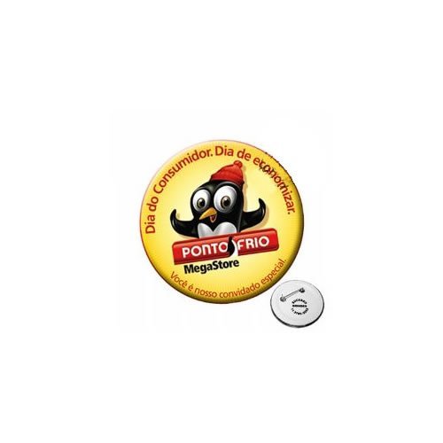 Bottom personalizado com seu logotipo, material em metal com fundo em PVC, tamanho 35 mm.