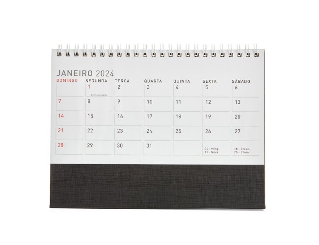 Calendário de mesa 2024 em papel couche 115g, base em percalux.