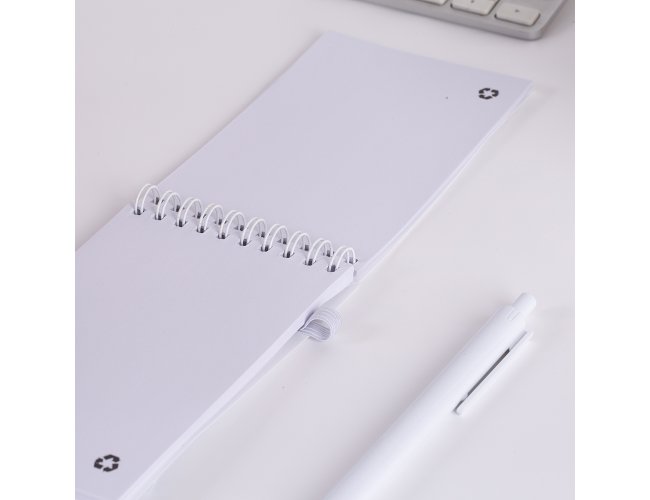 Kit escritório3 peças, contendo: 1 Bloco de anotações 14,8x10,5cm capa PP misto; 1 Caneta plástica retrátil; 1 Copo plástico 350ml com tampa.
