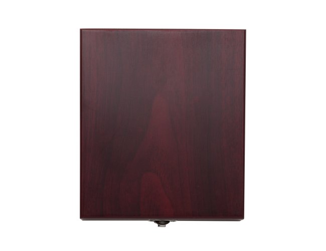 Kit vinho formato xadrez, material em MDF vinho com desenho de tabuleiro superior. Parte frontal com trava de metal e parte traseira com dobradiças; compartimento interno revestido com espuma; possui 32 peças de xadrez sendo 16 marfim e 16 marrom. Possui abridor saca rolhas, wine collar, tampa de bico e termômetro.