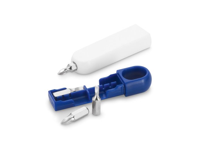 Conjunto de mini chave de parafusos em PS com 4 pontas diferentes removíveis com opção de guardar as peças no corpo. 9,2 x 2,2 x 1,3 cm
