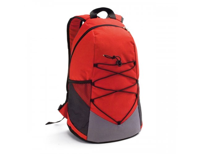 Mochila. 600D. Bolsos laterais em rede e bolso interior. Parte posterior almofadada. 250 x 420 x 160 mm