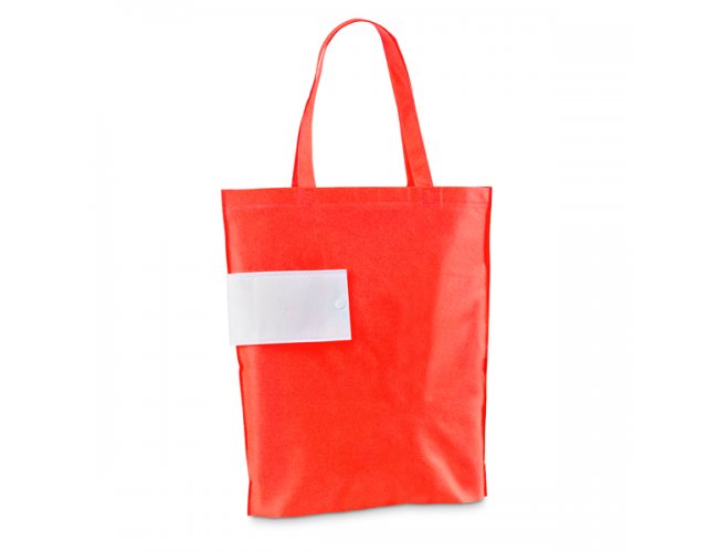 Sacola dobrável personalizada para brindes. Non-woven: 80 g/m². Termo-selado. Alças de 50 cm. Fornecido dobrado. Dobrado: 110 x 132 mm - Aberto: 370 x 410 x 80 mm