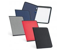 Pasta A4. Couro sintético e nylon 800D. Interior em microfibra. Bloco: 20 folhas pautadas. Esferográfica não inclusa.